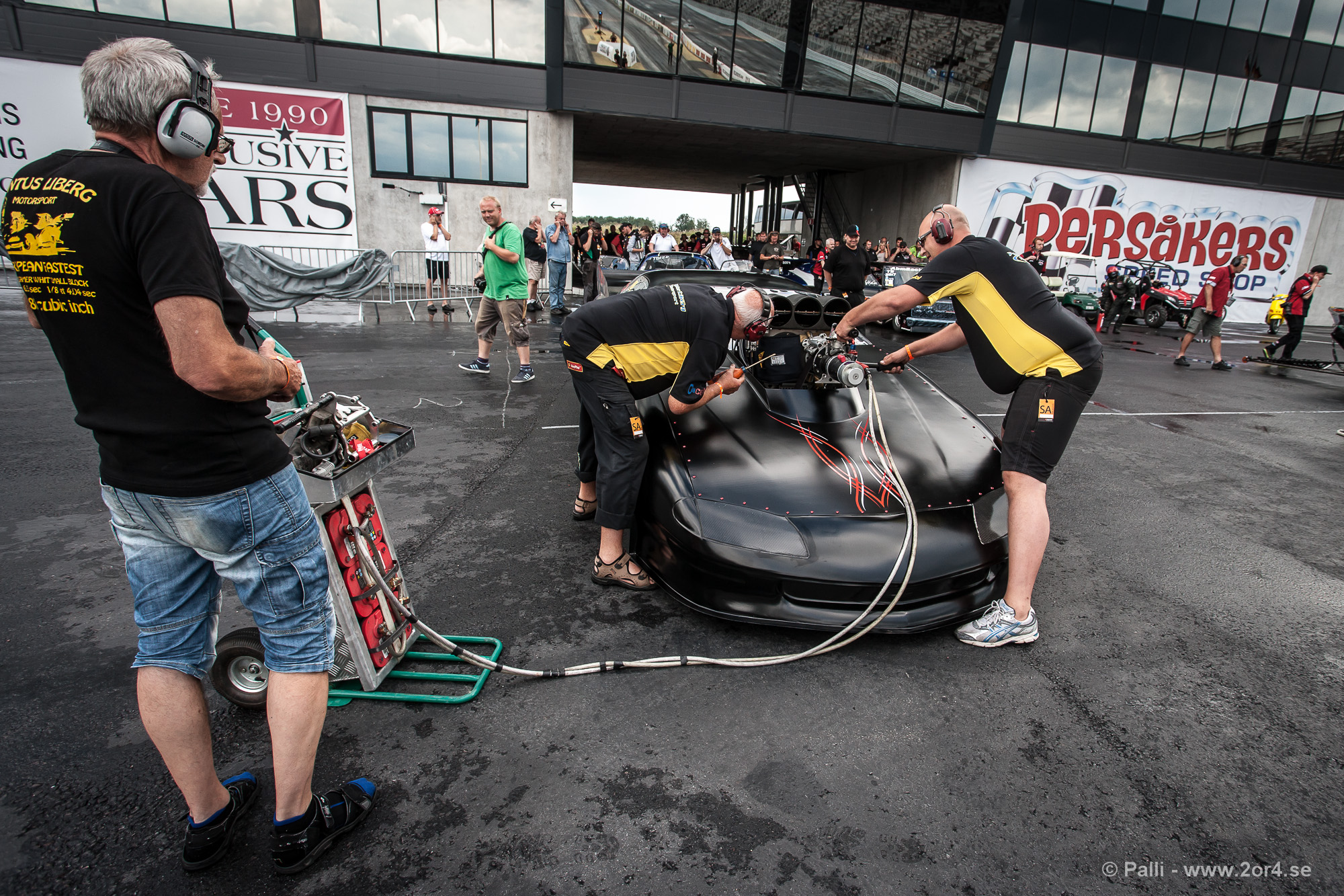 Pontus Libergs bil ska startas. Tur att min gamla Volvo inte är så omständig!