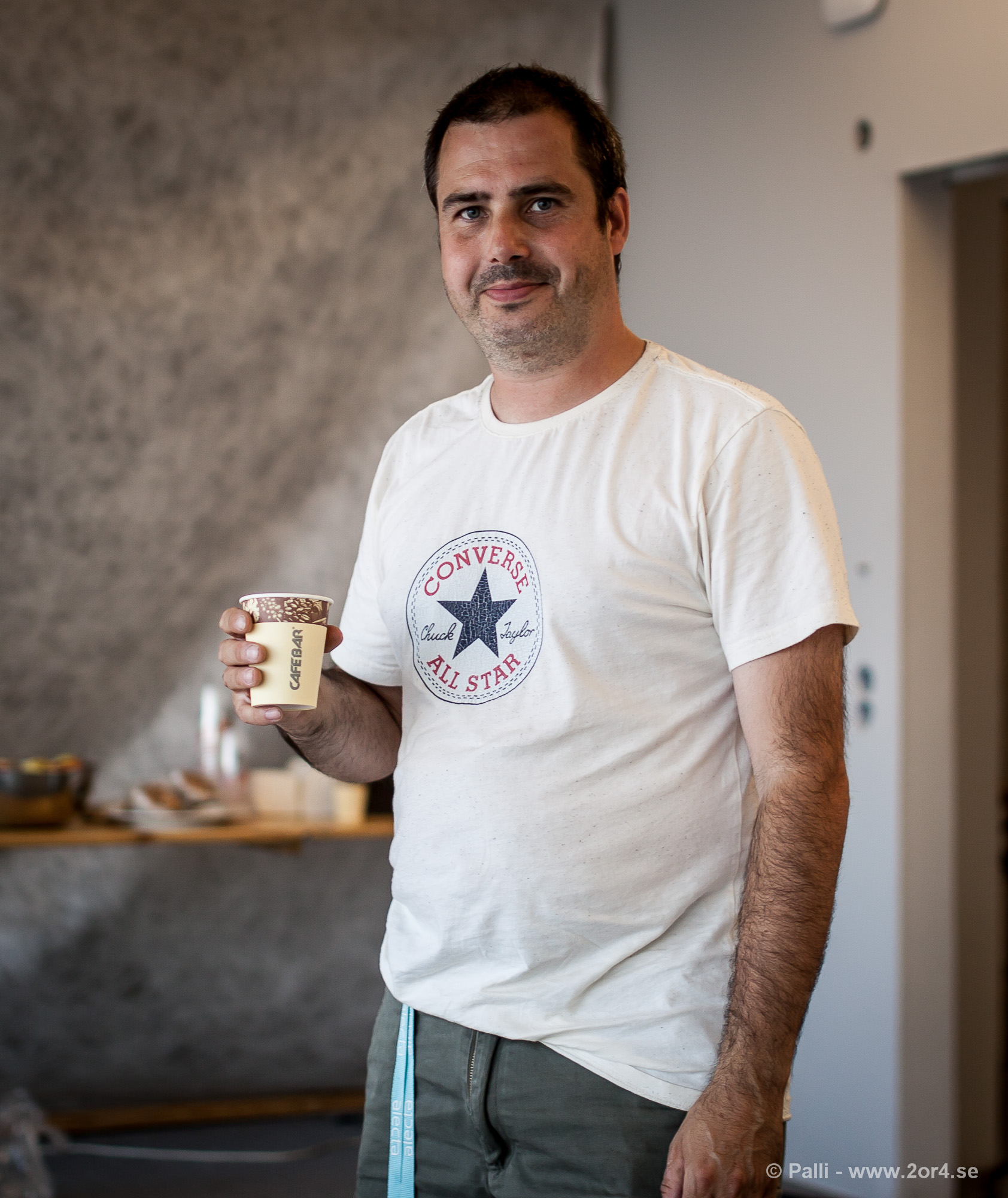Fotografen Patrik Karlsson (Kometfoto) tar fikapaus i pressrummet